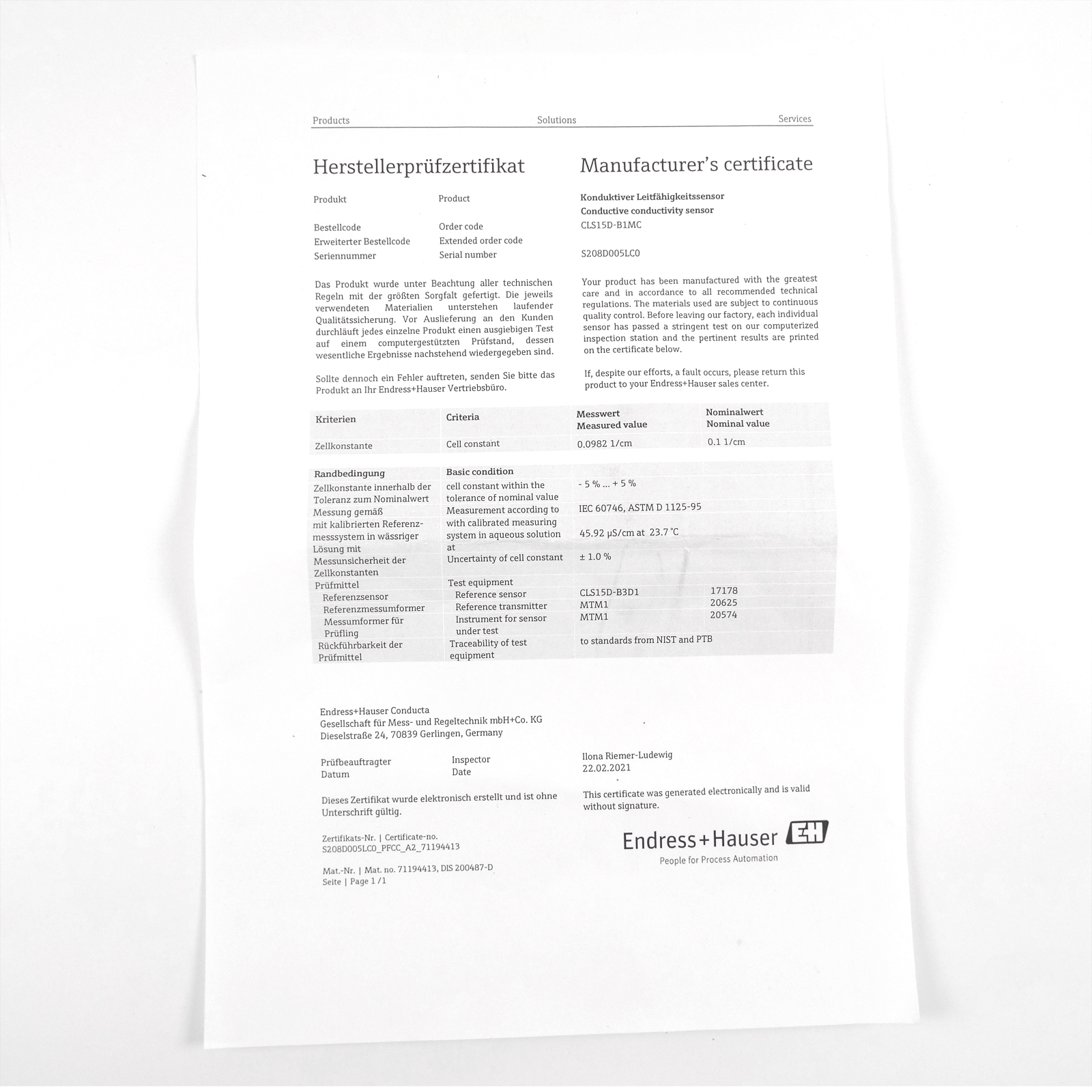 質(zhì)量證書中記錄有精準(zhǔn)電極常數(shù)